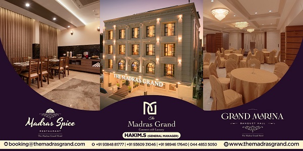 Customers can book their rooms in advance by visiting the website themadrasgrand.com or mailing to [email protected].