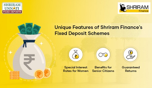 Special Benefit: Shriram Finance extends special benefits and higher interest rates to senior citizens and women depositors investing in its Fixed Deposit Schemes. Shriram Unnati Fixed Deposit offers up to 9.40%* p.a. (inclusive of an additional interest of 0.50% p.a. for senior citizens and 0.10% p.a. for women depositors). This initiative reflects Shriram Finances commitment to inclusivity for senior investors and women.