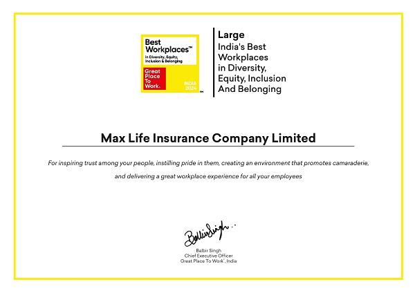 Max Life Insurance Company Ltd. (“Max Life“/ “Company“) continues its strong commitment to workplace excellence, having been recognized among Indias Best Workplaces for Diversity, Equity, Inclusion, and Belonging (DEIB), Women, and Millennials by the Great Place to Work (GPTW) Institute. These recognitions are a testament to Max Life’s relentless focus on fostering a progressive and inclusive workplace that resonates with the evolving expectations of its diverse workforce.