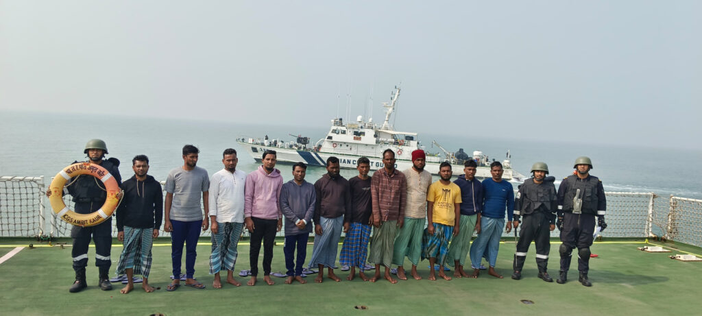 Kolkata : On Dec 9 2024 in a significant operation aimed at safeguarding maritime security, Indian Coast Guard (ICG) apprehended two Bangladeshi fishing trawlers “FV Laila-2” and “FV Meghna-5” along with 78 fishermen engaged in fishing within Indian waters.