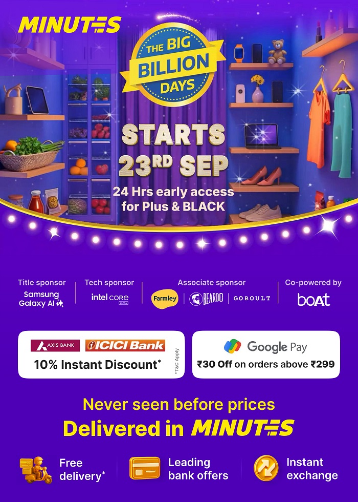 Hemant Badri, Senior Vice President, Head of Flipkart Minutes, Supply Chain, Customer Experience & ReCommerce, Flipkart, said, “As consumers prepare to witness the magic of The Big Billion Days 2025, Flipkart Minutes is poised to redefine the experience of India’s biggest shopping festival. Within a year, Minutes has established itself as the fastest-growing quick commerce platform in the country, built on innovation, value, and selection being its core strengths. This festive season, we are bringing everything from blockbuster smartphones and electronics to local sweets and festive hampers to customers’ doorsteps in minutes. Our growing presence ensures that customers everywhere, not just in metros but also across Tier 2 and emerging markets, can access value and deals instantly. What makes this year significant is the opportunity to extend the promise of The Big Billion Days beyond scale and selection, into speed, making it possible for millions of households to celebrate without compromise. Our continued focus is on building a resilient and technology-led ecosystem that combines reliability with reach, shaping the future of quick commerce while reinforcing Flipkart’s commitment to serving diverse customer needs across India.”